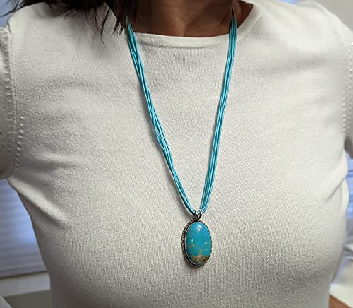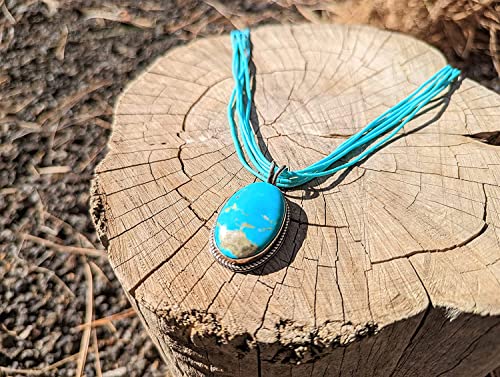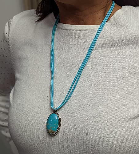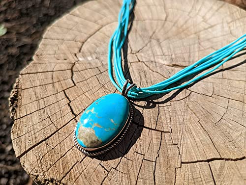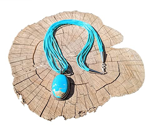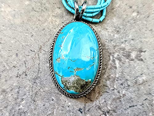 Absolutely beautiful Navajo necklace and pendant. Sterling silver. Very fine Natural (not block) Kingman 5 strands turquoise heishi Necklace and handmade by Ramona Byrd. Large Mountain turquoise pendant. Handmade and signed by Leonard Maloney. Elegant and beautiful Southwestern collectible heirloom quality jewelry. Traditional tribal jewelry artwork passed down for centuries, intricate details. A definite conversation piece. A special one-of-a-kind complement to any collection!