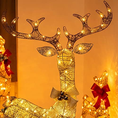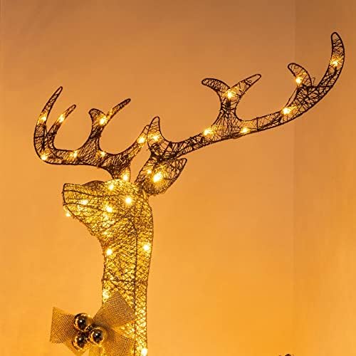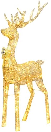 YULETIME 60-in Tall Pre-lit Christmas Buck, Lighted Glitter Gold Standing Christmas Male Deer with 120 Warm White LED Lights for Holiday Decoration (Buck)