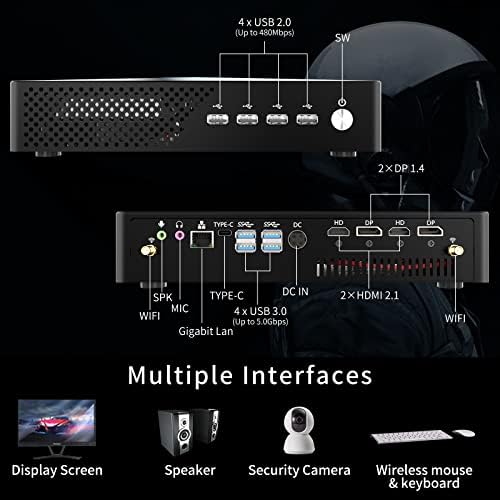 [Functional Interfaces] Mini computer is equipped with 4 x USB 2.0, 4 x USB 3.0, 2 x HDMI ports, 2 x DP ports, 1 x Type-c port, 1x RJ-45 Gigabit Network Ethernet, 1 x Audio in/out. Built-in Bluetooth 5.1 and 802.11AX wifi 6, Increase transmission distance and signal stability. Mini PC supports multiple device connection and can be used with servers, monitoring equipment, office equipment, displays, projectors, televisions, etc, enough to meet your life and work needs.