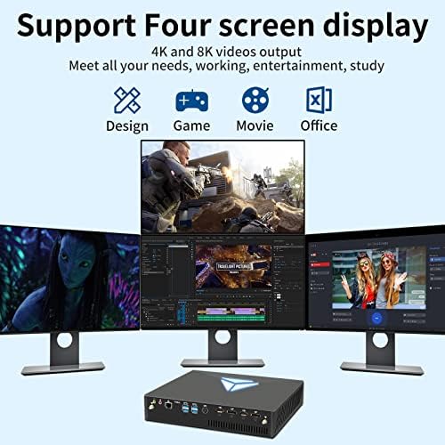 [Stable Operation] This mini PC is equiped with 3 turbo fan and has aluminum alloy case assistting to dissipate heat. Make it can work smoothly and will not cause too much noise. All kinds of office software run easily, such as: C4D 3D drawing software, Pr video editing software, PS graphic design software, etc. Mini desktop computer support Auto Power On and Wake On Lan.