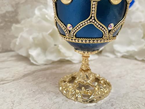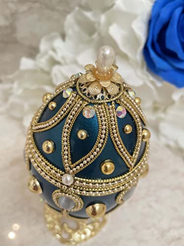 ONE OF A KIND FABERGE ❤ Blue FABERGE style Trinket Box Gift SET Amazing gift for all Occasions birthday, Graduation ,Valentine’s day, Thanksgiving, Weddings Engagement, Anniversary, Easter. ❤ Faberge tradition!! Fabergé eggs Lavish reminder of the dynasty’s grand reign. Eggs have for centuries symbolised fertility, wealth, love, happiness & luck.Blue the color of loyalty , wisdom, honesty and LOVE. ❤ Make this 24kt GOLD hand decor Natural Faberge style egg a reminder of your special occasion!