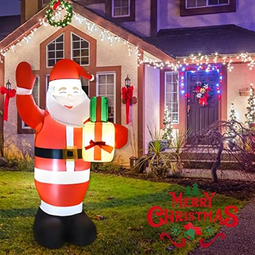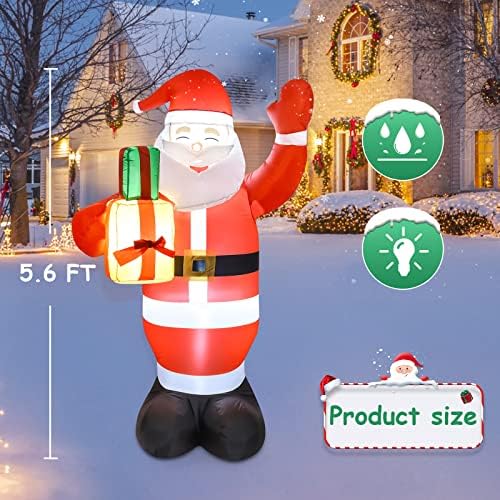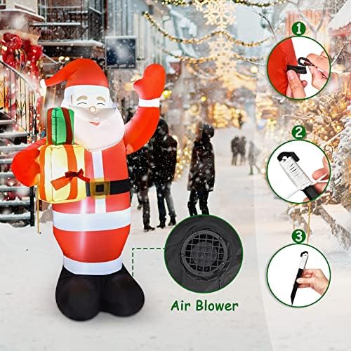 Well-made Design: This santa with gift inflatable is made of high strength waterproof polyester which is against rips and tears. Excellent waterproof fabric makes the product look stretched even after the rainy day.