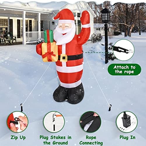 Strong and Sturdy: The blow up christmas decorations with lights comes with ropes and stakes to ensure the stability of the inflatables. A 10FT power cord which meaning that you can place it anywhere in your yard or garden.