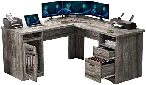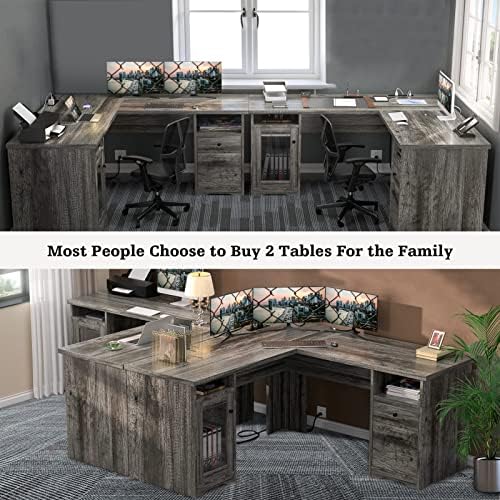 【A Table With Enough Space】The L-shaped desk allows you to divide your work and play areas or two people working together. 60” x 60” wide table provides enough space for designers and stock manipulators who need a 3-screen display. There is also space for writing space, a printer, and file holders. The side drawer and cabinet maximally utilize your home office space and provide enough space for storing books, magazines, files, letters, and others for keeping your things organized and convenient usage.