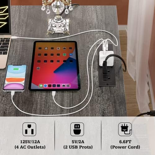 【A Convenient Table For Charging Multiple Devices】The L-shaped desk with drawer is built with 4 power outlets and 2 USB charging ports. You no longer need to switch back and forth between charging your computer and phone, so you can plug in all your devices at once. It provides additional power support for your laptops, computers, scanners, cell phones, printers, headsets, tablets, gaming devices, and other fast-charging electronic devices.