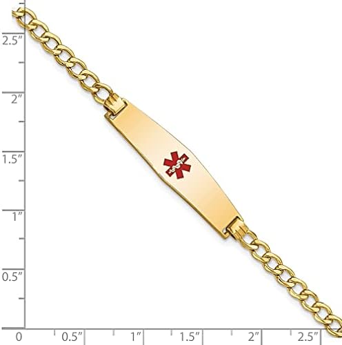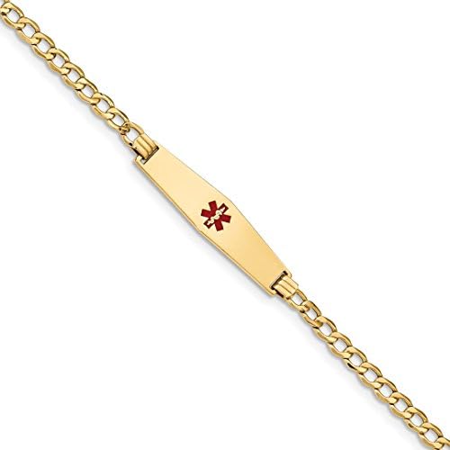 ICECARATS DESIGNER JEWELRY 14K YELLOW GOLD MEDICAL ALERT SOFT RED ENAMEL CURB LINK ID BRACELET 7 INCH
