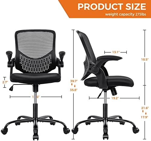 Office Chair, Home Office Chair Desk Chairs with Wheels, Ergonomic Office Chair Height Adjustable Computer Chair Mesh Office Chair Flip Up Arms,Swivel Rolling Chair Lumbar Support, Rock and Lock