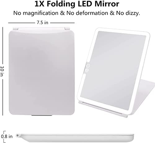 【Multi-purpose】 Built 1800mAh Li-polymer Battery,Save your efforts and money to replace battery & use it cordless.The travel makeup mirror foldable design it is easy to carry with you in dail life! You can carry it out everyday to view and fix your makeup too.Perfect beauty mirror Valentine’s Day gift for wife, friends, mother and yourself.