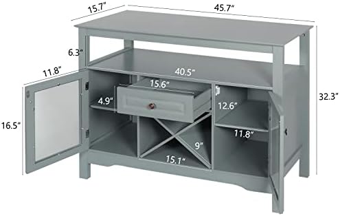 【Easy to Assemble & Maintain】 — Dimensions is 45.7”(L) x 15.7”(W) x 32.3”(H). All parts and accessories are included, you can assemble the sideboard buffet cabinet easily according to specific manual within short time. Flat surface is easy to clean and wipe dirty stain from the surface with wet cloth