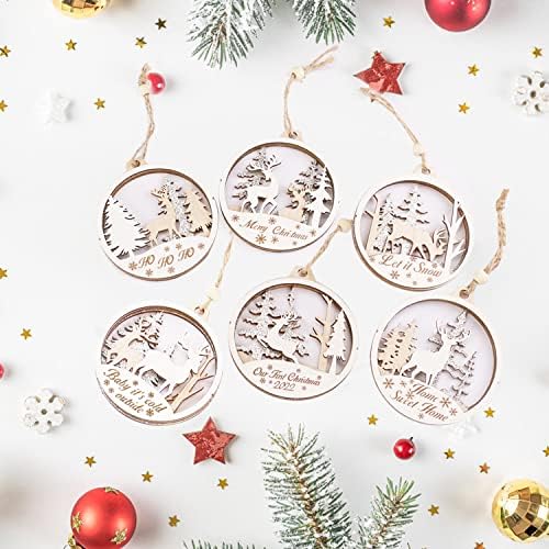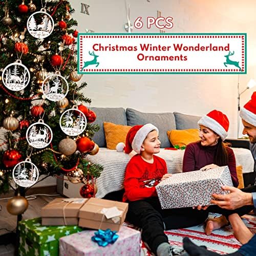 【Christmas Tree Ornaments Sets for your Christmas Tree】6PCS different winter wonderland Theme Ornaments with engraving, 3.15 inches (8CM) diameter, great wooden ornaments for winter Christmas tree decoration.