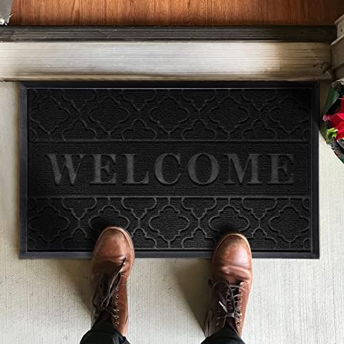 【Capture Dirt and Moisture】: Yimobra front door mats outdoor adopts “Welcome” pattern groove design, forming a detention dam extending in all directions, helping to capture dirt, dust, gravel, mud, sand, grass or other messy debris and prevent them from entering Indoor; The surface of floor mat beautifully woven polyester fabric absorbs moisture, and the durable oblique rubber edge will not accumulate water in rainy and snowy days, keeping your home dry and clean