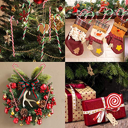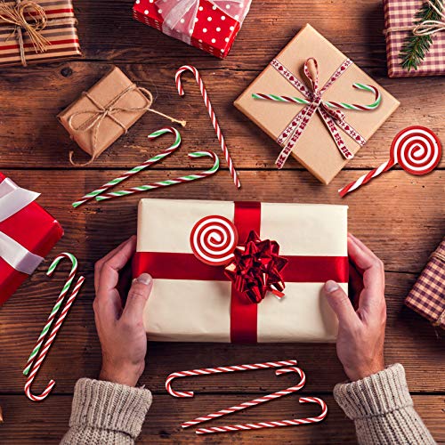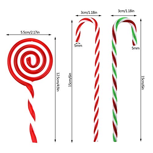 Twisted Design and Size: The christmas candy canes stick length is about 15cm/ 5.9 inch, width about 3cm/ 1.2 inch, and the lollipop length is approx 12cm/ 4.7 inch. classic colors of christmas, curved stripes design for easy holding and hanging, add a lovely atmosphere.