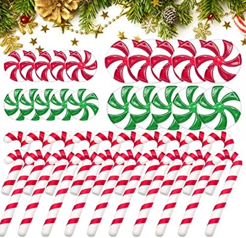 【Color and shape】Our various decorations are designed in two different shapes, namely candy and cane. The appearance is cute and the colors are vivid and bright, including green and red. They look shiny and charming, giving you a pleasing vision Effect