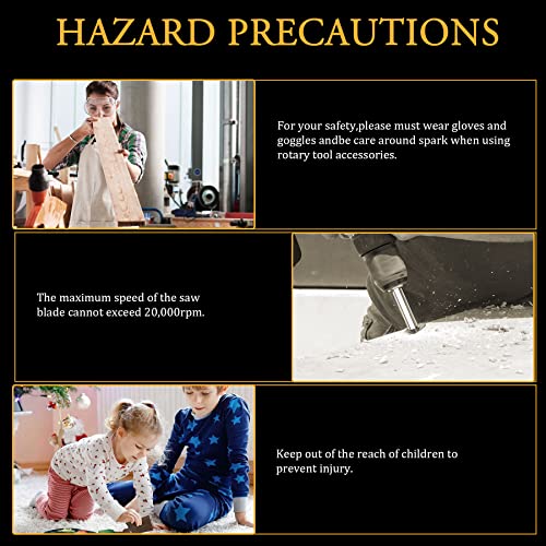 ⚙️【CAUTIONS】①For your safety, please must wear gloves and goggles and be care around spark when using rotary tool accessories.②The maximum speed of the saw blade cannot exceed 20,000 rpm.③Keep out of the reach of children to prevent injury.④If there is any dissatisfaction with the product,please contact us at any time.