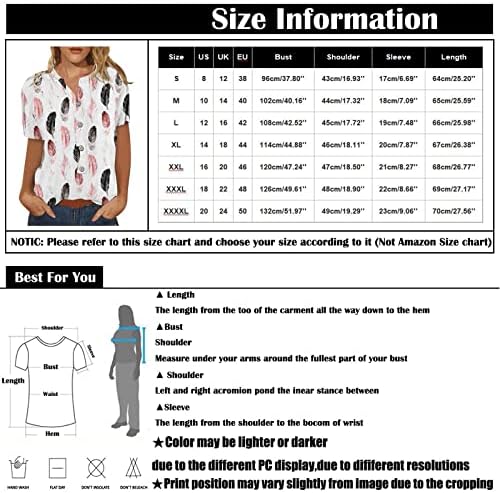 BTLYUIOAPE Summer Shirts for Women 2023, Button-Down Neck Short Sleeve Blouses Feather Pattern Plus Size Casual Tops