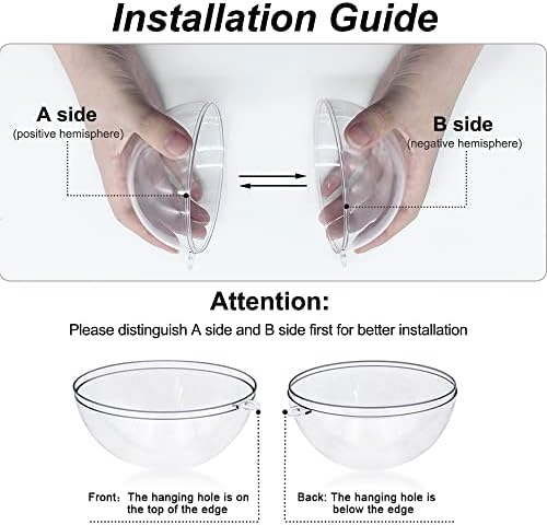 【Easy to Use】Each Christmas decoration ball is composed of 2 hemispheres, they are divided into A side and B side, please pay attention to find the correct A side and B side, they have concave and convex edges to fit, with the instructions, very simple and convenient to use