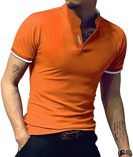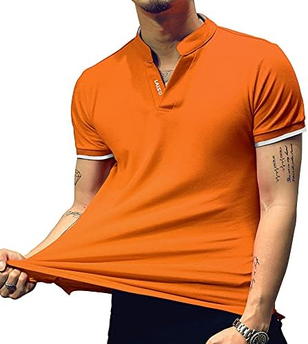 This short sleeve Henley T-shirts has V-neck and Polo Design, classic cut and soft cotton fabric.Solid color tshirts and brings you simple & effortless style, make this polo tee a go-to for the office or the weekend.