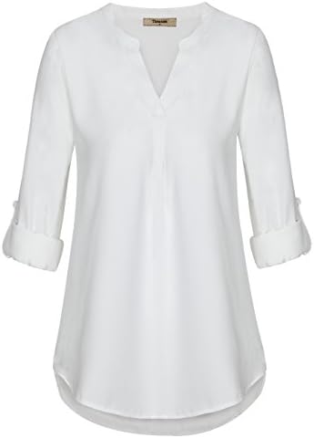 Our 3/4 sleeve blouses for women are cuffed,If you prefer 3/4 sleeves it is easy to roll up and buttons stylishly closed. This provides more options for comfort and style when matching this shirt with different outfits.