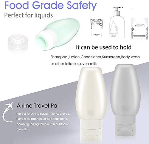 🍼【 Food Grade Silicone 】Constructed with the best quality silicone, you’re guaranteed these sturdy bottles will last you a lifetime of worry-free travel and adventure. Use it to store your shampoo, mouthwash, liquid soap, sunscreen, hair spray and gel, lotions, creams and many more. Their uses are practically endless. And because they’re guaranteed 100% BPA free food grade silicone, you can even use them for baby food, sauce and salad dressings