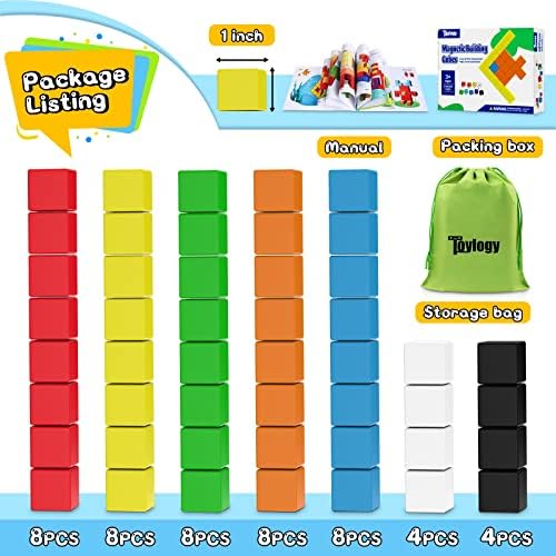 【SAFE AND STRONG MAGNETIC】Toylogy magnetic activity cubes are made of high quality ABS material and crafted with the round edges and right size. Compared with the magnetic balls on the market, our stronger magnet is sealed inside the plastic case totally to prevent the magnet falling off.Highly recommend for 3-5 years old kids.