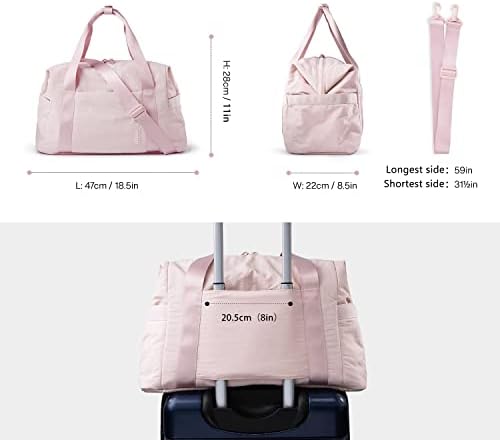 Compact Size- 18.5 x 8.7 x 11 inUltra Lightweight- Weekender bag weights only 1.8 pounds. Lightweight and soft nylon fabric makes your carrying comfortable.ch, meets most carry-on requirements.