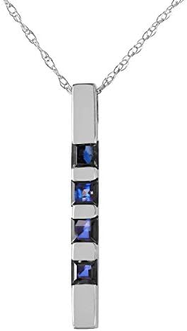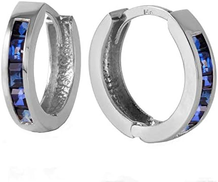 14k 24″ White Gold Jewelry Set: Natural Sapphire Pendant Necklace and Huggie Hoop Earrings