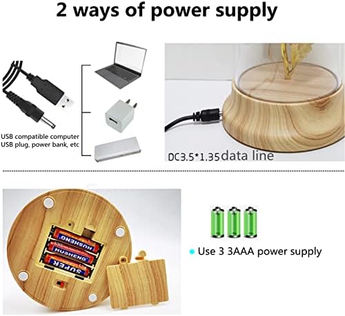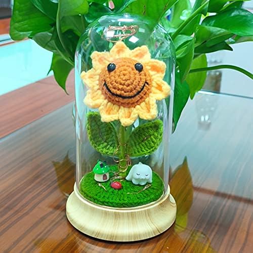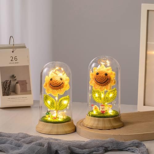 2. 【Material and Design】 Drop-resistant acrylic transparent cover, environmentally friendly ABS wood grain base, high-quality wool crochet smiley sunflower, all-copper LED 2m light string, the light string has a service life of 3 to 5 years, USB power and battery 2 kinds of use functions, you can choose any one