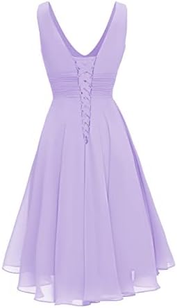 💓Detail:V-Neck, Pleated, Lace Up Back,100% Polyester,Chiffon,100% Hand Made