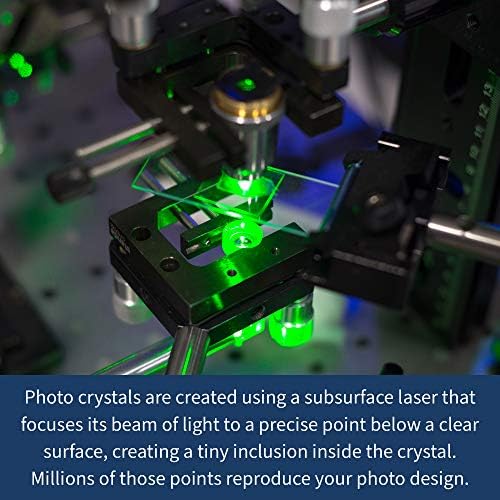 Photo crystals are made using a special laser that focuses its concentrated beams of light to a precise point below the surface of the crystal. A powerful laser pulse makes a tiny void or inclusion inside the crystal until enough points are created to reproduce your photo.