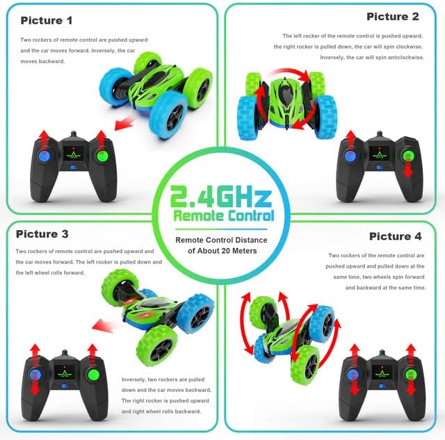 2.4Ghz Anti-interference Control Toy Car: With 2.4GHz interference-free control frequency, the high speed 7kmh RC toy car enables multiple RC stunt cars to race together at the same time and place for about 40 meters remote control.