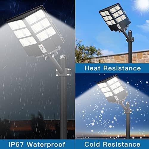 【 DURABLE AND IP67 WATERPROOF 】 The commercial solar street light adopts high-quality ABS and die-cast aluminum material, which is lightning-proof, rain-proof, oxidation-proof and anti-exposure.IP67 waterproof level better than IP66 ip65. IP67 waterproof function makes it work on a rainy day. Its adaptable working temperature is -22℉~140℉.