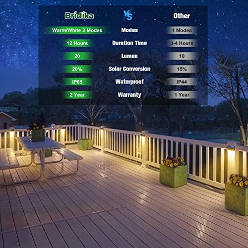 【IP65 Waterproof & Widely Use】Bridika IP65 waterproof outdoor fence lights are made of high-quality PC & ABS material, making them durable in all kinds of weather, our fence light is suitable for the backyard, patio, wall, pool, deck railing, stair handrail, etc.