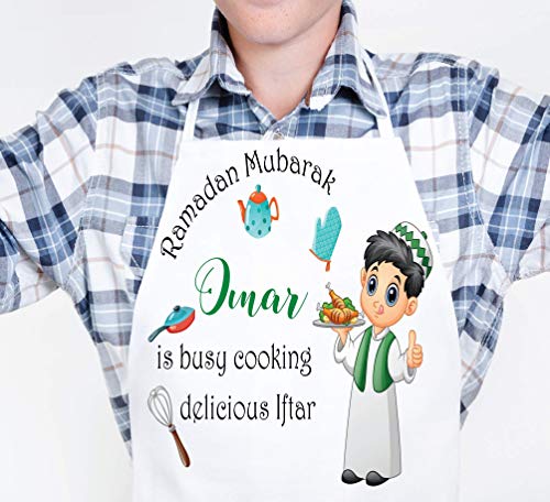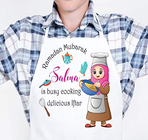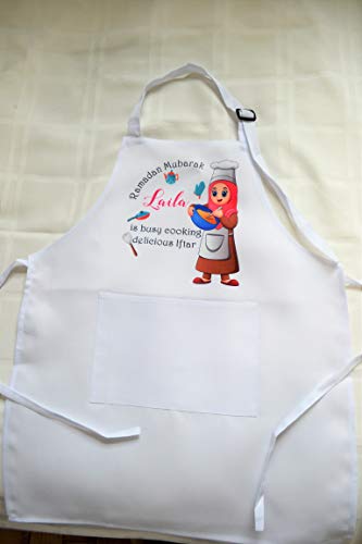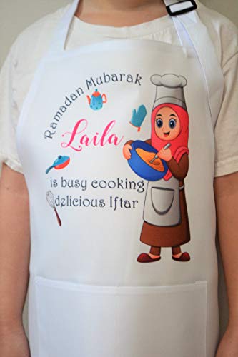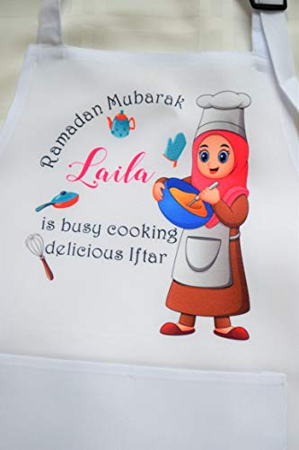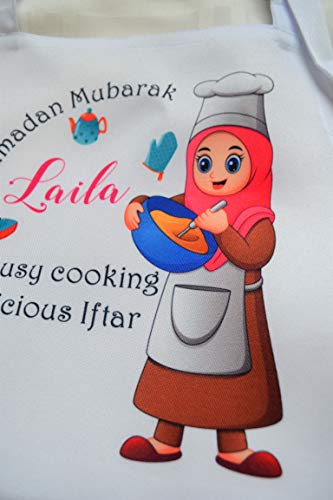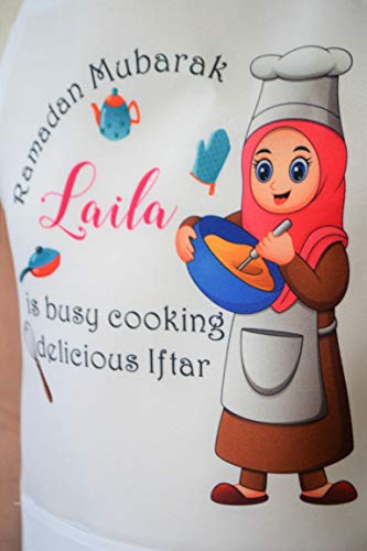This is a colorful and beautiful personalized apron for Ramadan. It can be customized for many occasions. Please make sure to leave your customization, if any, in the box, if you wish to add a name or short note. It is made for boys or girls and comes in 3 sizes: – Kids from 3 to 6 years old – Kids from 6 to 12 years old and adult. It is quite lovely to have family and friends wear matching aprons as they cook Iftar together. Washing instructions: Machine washable on delicate cycle with warm water No bleach Lay flat to dry. Thank you
