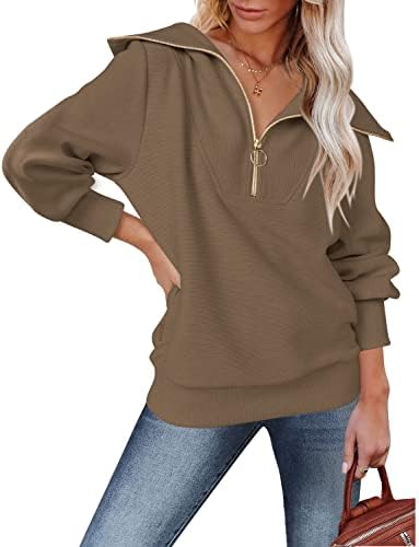 Feature: Quarter zip up sweatshirts, v neck relaxed fit pullover tops, henley shirts, casual sweatshirt for women, trendy and dressy tops for women, casual style Half zip up pullover women,oversized hoodie, drop shoulder collar, 1/4 zip long sleeve hoodie, fall outfits for women