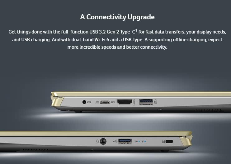 【A Connectivity Upgrade】Get things done with the full-function USB 3.2 Gen 2 Type-C for fast data transfers, your display needs, and USB charging. And with dual-band Wi-Fi 6 and a USB Type-A supporting offline charging, expect more incredible speeds and better connectivity.