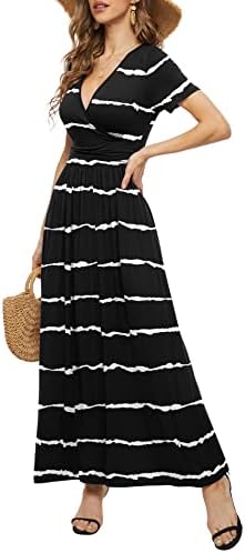Style: Deep V-neck, Wrap Waist front, Maxi Dress, Side Pockets, Floral Maxi Dress, Short Sleeves and Floor Length Dress.