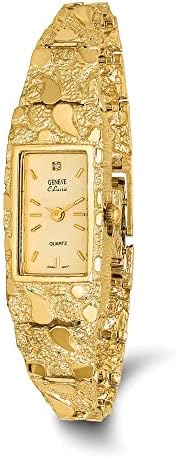 UNIQUE FEATURES – Solid gold has been prized since the first settlers came west in search of their fortunes. Now, you too can experience that feeling of freedom and adventure with this gold nugget watch. This 10k yellow gold ladies champagne 15x31mm dial rectangular face nugget watch features a quartz (battery operated) movement and has a gold dial color. The case is 31 x 15 mm in size and includes a 1 year limited warranty against manufacturer defects.