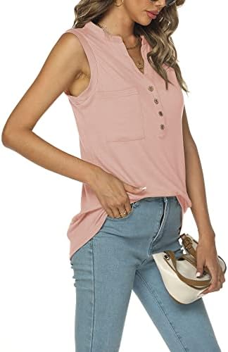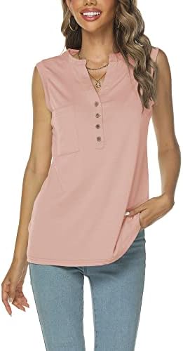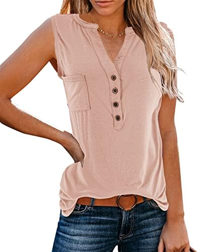 Sunborui Women’s Button Deep V Neck Sleeveless Tank Tops Summer Casual Loose Pocket T Shirts Blouse