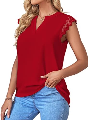 Floral lace cap slevee, notch neck, plain color, lace sleeveless chiffon tunic top for women and girls.