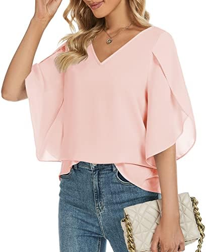 Features: Women’s flowy split sleeve tops, elegant chiffon blouses, casual v neck shirts, available in solid color and floral. It can be worn as a cute date style, or as a professional formal attire