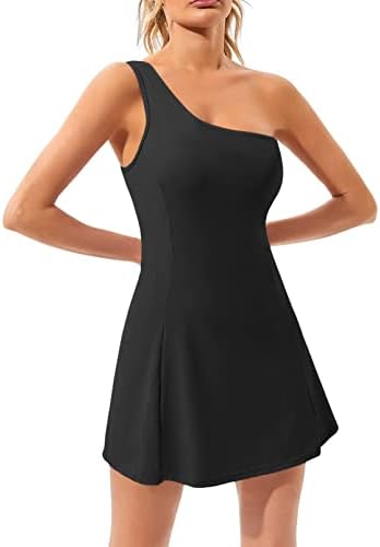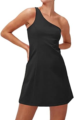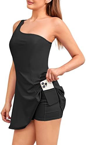 Features: Eye-catching design: One Shoulder, a built-in shorts liner & bras with two pockets. Two side pockets are added in undershorts are great for your phone, tennis ball and keys, without worrying about losing anything.