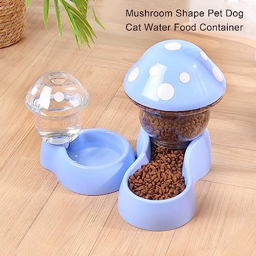 A pet feeder is designed in mushroom shape, cute and exquisite. Its barrel body is transparent, which is convenient to check and replenish in time, and the top cover is open for adding grain.
