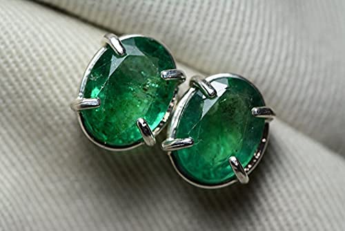 These earrings feature a large pair of natural earth mined emeralds with an attractive green color.