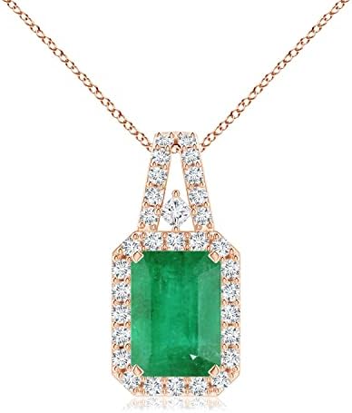 18 Inch 14K Rose Gold Chain Included with Pendant. Features 0.5 Carat Emerald and 0.155 Carat Diamond.