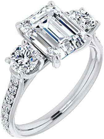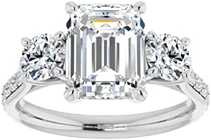 — 3 CT Emerald Cut Colorless Moissanite Engagement Ring Set Wedding Bridal Ring Set Solitaire 10k 14k 18k Rose/White/Yellow Gold Sterling Silver Vintage Antique Anniversary Promise Ring Gift —