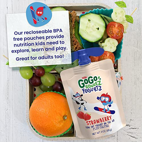 GoGo squeeZ yogurtZ fruit and yogurt snacks provide the nutrition kids need to help them explore, learn, play and just be kids; Adults can snack on these yogurt pouches too, keep a pouch in the car, in a bag or at your desk for tasty snack on the go