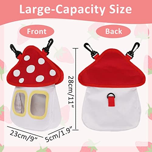 🐭【UNIQUE PATTERN】🐭 — The rabbit feeders for cages is designed with cute mushroom shape, making your small pet’s life more colorful. And the hay bag for rabbits can be reused and cleaned, we recommend cleaning it regularly to keep it tidy.