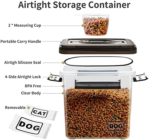 【Portable Carrying Handle with Measuring Cup 】With the carrying handle, this dog food container is perfect when you take your dog for travel, picnic, hiking or camping. The pet food container comes with 2 measuring cups, which can easily keep on your pets steady diet by measuring same amount.