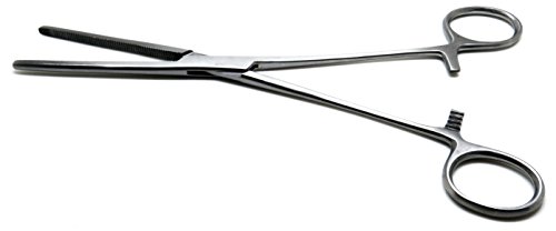 Pean Rochester Straight 8”: Working End Length 7 cm, Net Weight of Instrument 1.95, 3 Steps Locking Ratched, Finger Ring Grip. A hemostat (also called a hemostatic clamp, arterial forceps, or pean after Jules-Émile Péan) is a surgical tool used in many surgical procedures to control bleeding. For this reason it’s common in the initial phases of surgery for initial incision to be lined with hemostats which close blood vessels awaiting ligation. Rochester-Pean Hemostatic Forceps are used for clamping larger tissue and vessels for hemostasis. The full horizontal serrations and 8” lengths make these forceps a versatile instrument used in multiple procedures. They are available Straight. This product is straight with full, horizontally serrated jaws, and a length of 8 inches.