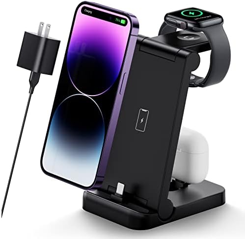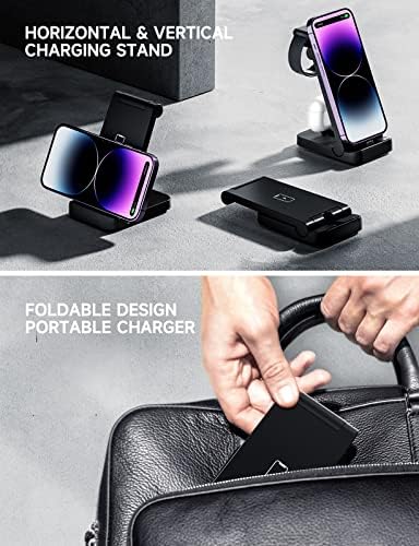 Foldable Design, Simplified Charging. Say farewell to so many tangled cables on your desktop. Only a cable and a wall adapter are required (and included) to make charging multiple devices simple and space-saving. Charge your iPhone, iWatch, and AirPods on a charger simultaneously. When it’s not in use, fold the portable charger into a slim size, so you can easily slide it into your bag, which never takes too much space but facilitates your life and travel a lot.
